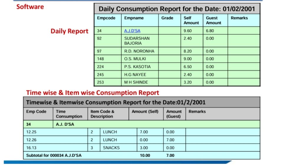 Again Data can be downloaded from these Readers which is further processed using Canteen Management Software. Different Timings for Breakfast, Lunch and Dinner can be setup with different Rates.