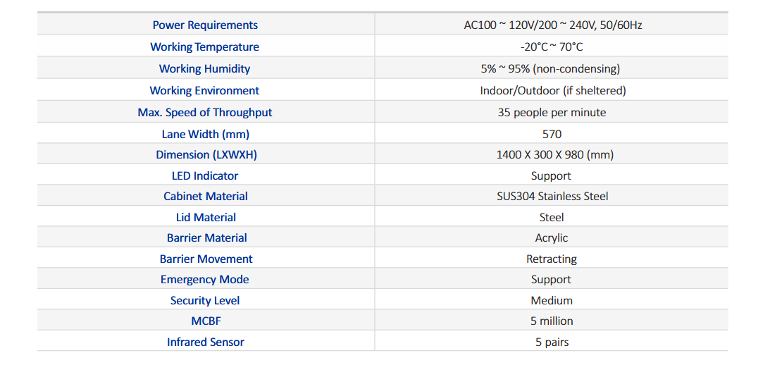 Smart Elegant Flap Barrier Series and associated access control readers are all factory-tested prior to shipping.